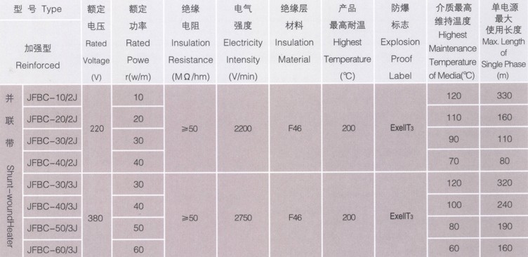 船用電伴熱帶分單相和三相二大類,其結(jié)構(gòu)和工作原理與JFB加強型并聯(lián)電熱帶相同。船用電熱帶除有加強型并聯(lián)帶全部特性外,還具有更好的機械強度、阻燃性、耐油、耐熱性和防霉菌生長。